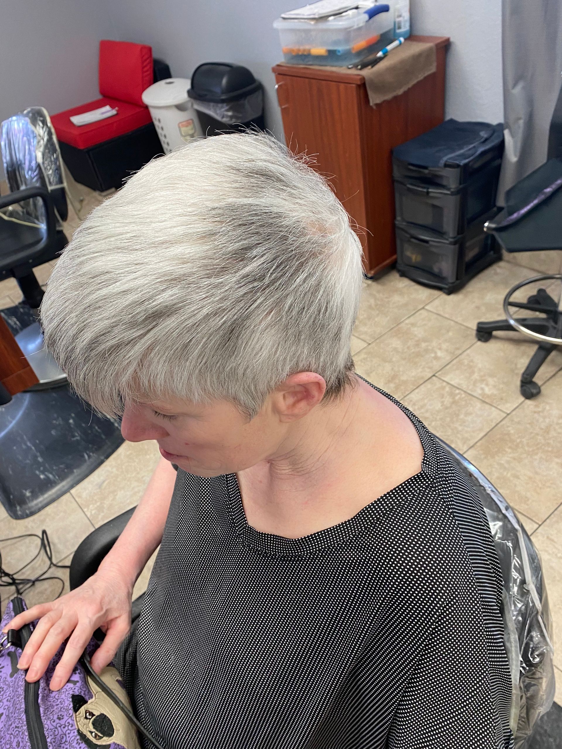My name is Angel Harvey. I’ve been a Pahrump resident since 1979, growing up in the salon business. Being a second generation stylist for 33 years I’ve specialized in perms, roller sets, and custom cuts. I also do highlights and color.